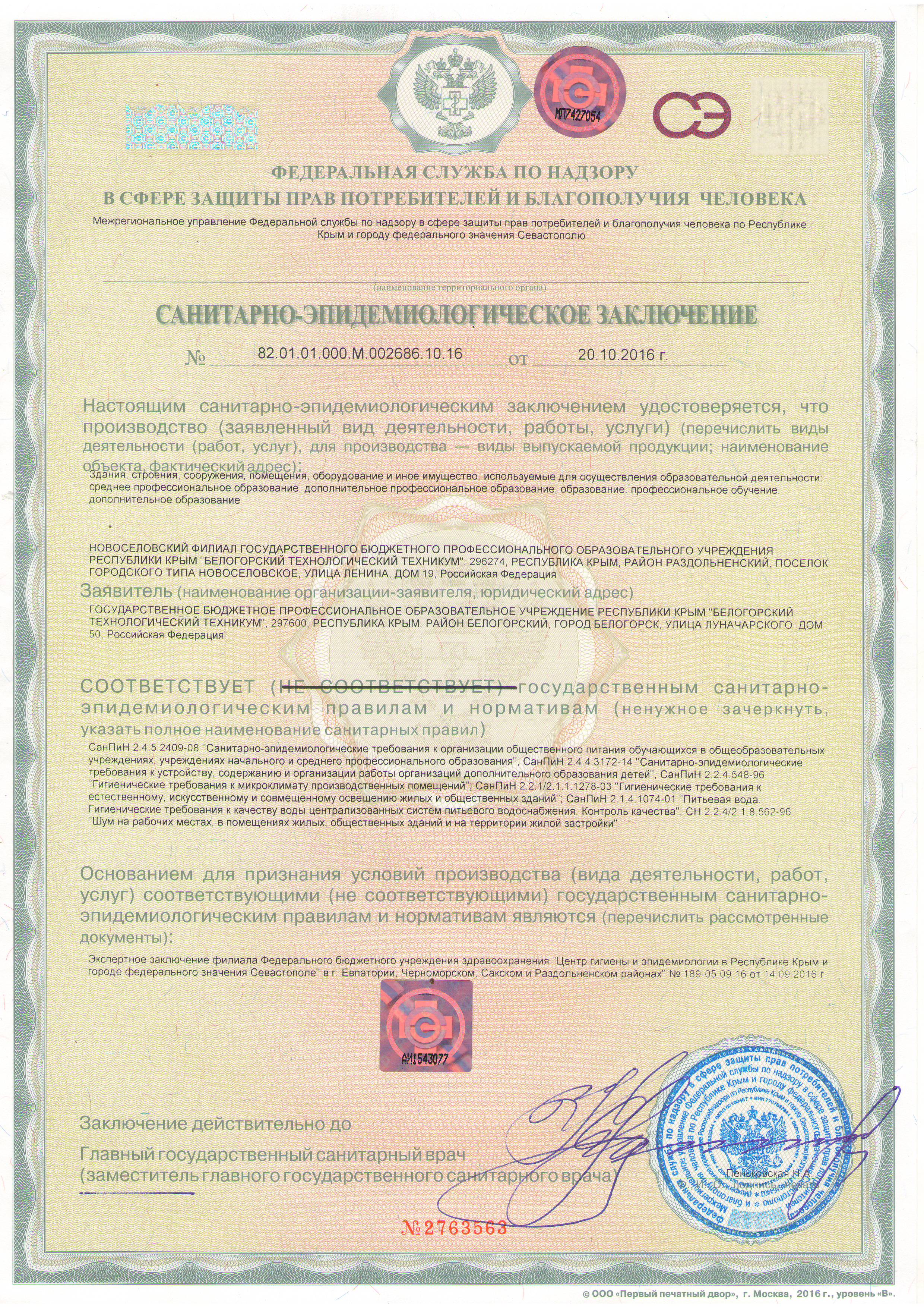 САНИТАРНО-ЭПИДЕМИОЛОГИЧЕСКОЕ ЗАКЛЮЧЕНИЕ